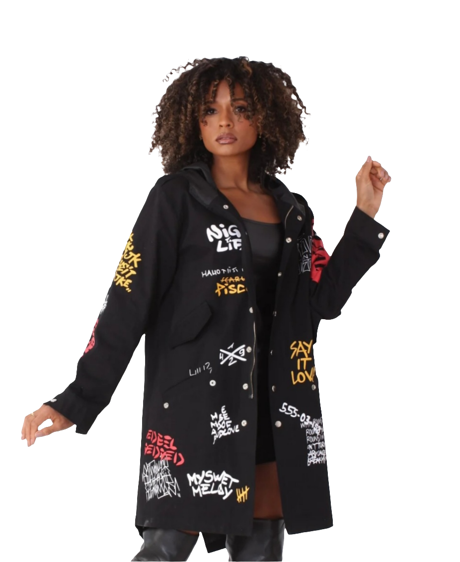 Graphite Writing,Hood Jacket