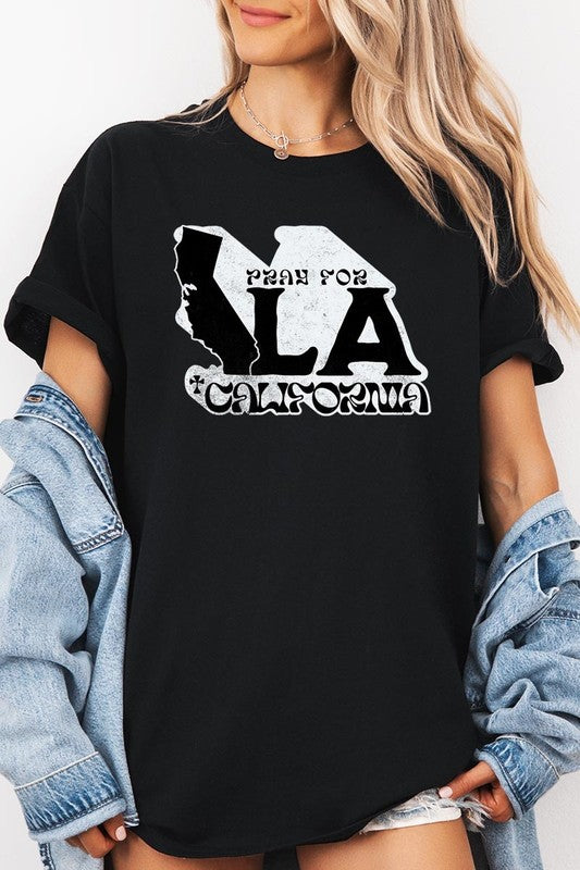 Pray for LA California Graphic Plus Heavy Cotton Tee. **PLUS SIZE**