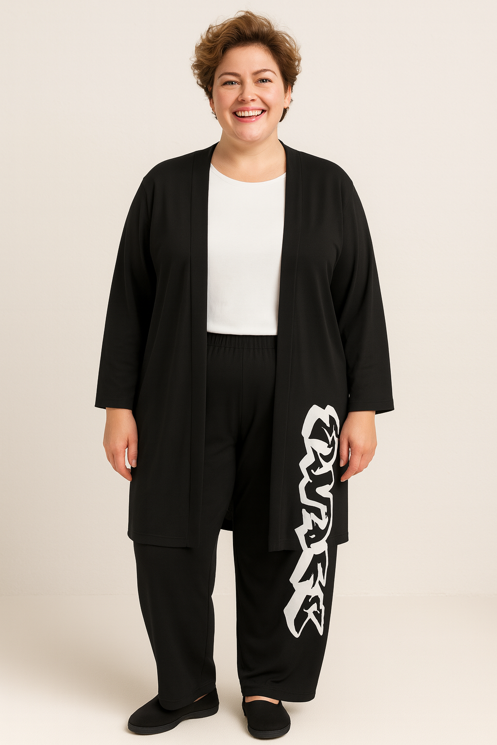 A casual chic suit style from a yoga pant and fashion matching cardigan