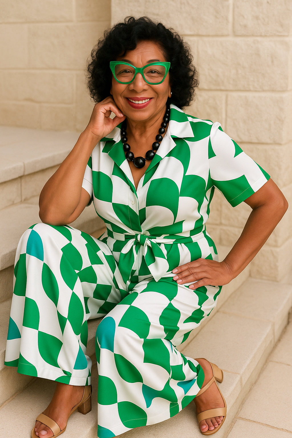 The vibrant green color, adorned with unique prints, is perfect for making a bold statement any occasion. Whether you're headed to a brunch with friends or a n night out, this jumpsuit provides the versatility you need.